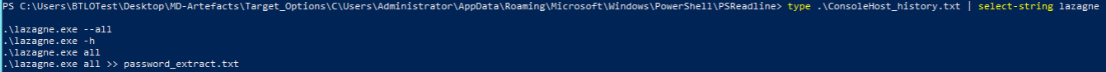 Apart from the legitimate output, threat actor ran lazagne credential dump program using powershell.