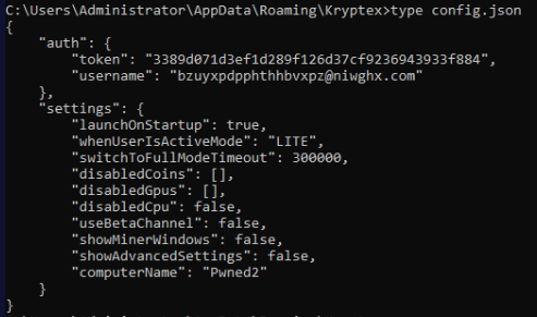 The threat actor has used an off-the-shelf cryptominer, what is the name of the executable? (10 points): kryptex.exe