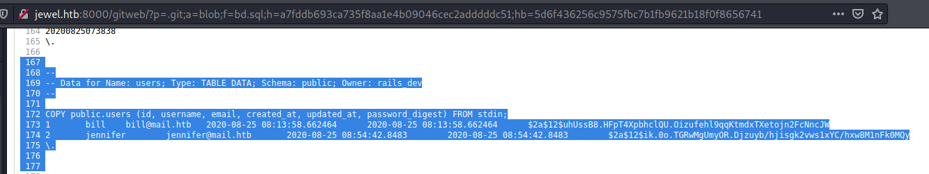 Two new hashes for bill and jennifer users will be revealed and one of that can be bruteforced (hashcat mode 3200 (bcrypt)):