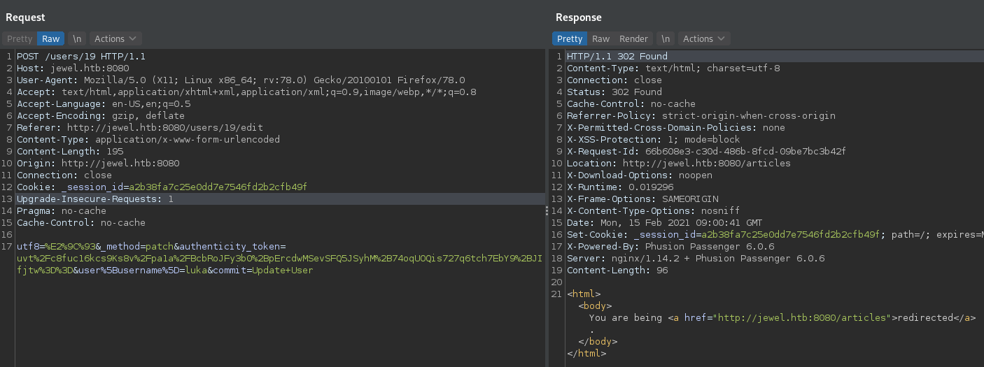 We can see that host’s name is jewel.htb which can be put into the /etc/hosts file. Apart from that there are two Web Services running