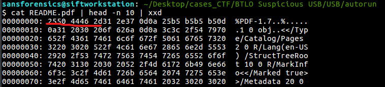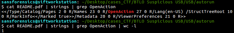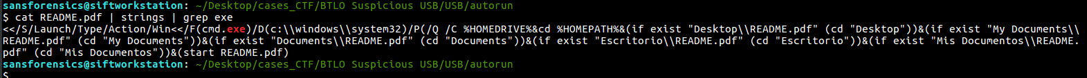 sansforensics@siftworkstation: ~/Desktop/cases_CTF/BTLO Suspicious USB/USB/autorun