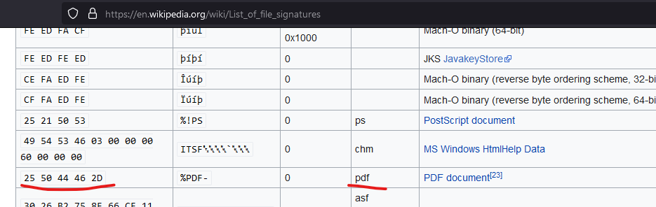 Comparing magic bytes reveals that file is indeed a PDF as it claims to be
