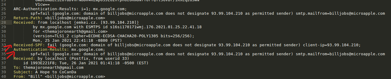 If we check the senders Email, we’d see that it does not come from allowed IP range, hence fail