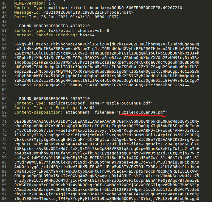 Filename actually says it’s PDF but if we copy whole Base64, decode it and save it to the filename…