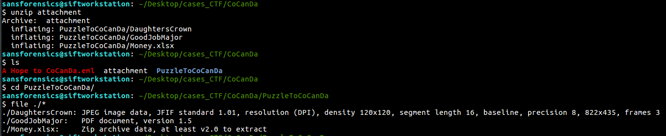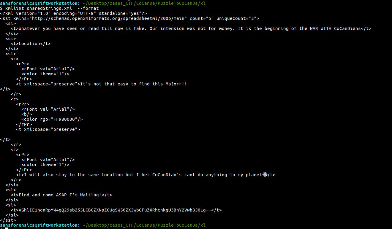 sansforensics@siftworkstation: ~/Desktop/cases_CTF/CoCanDa/PuzzleToCoCanDa/xl