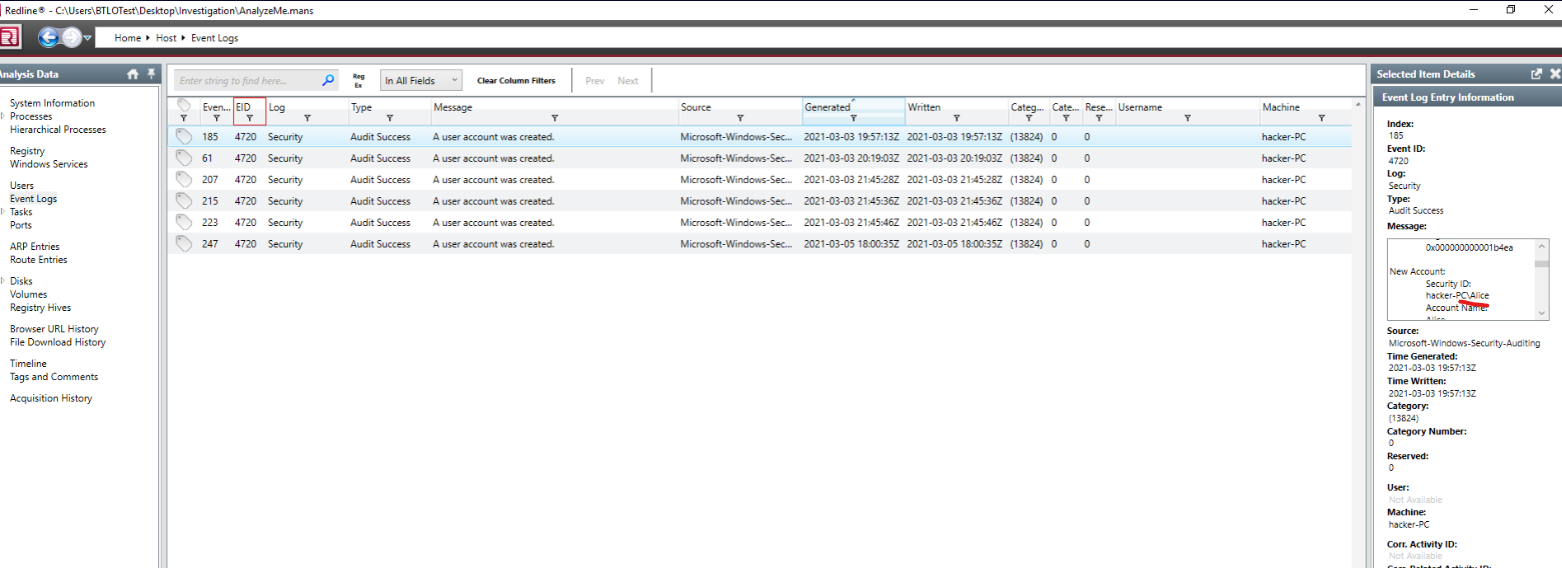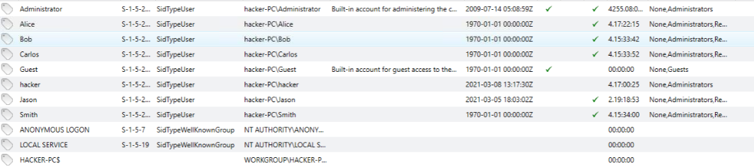 Other users were created which can be seen in event logs searching for 4720 Event ID