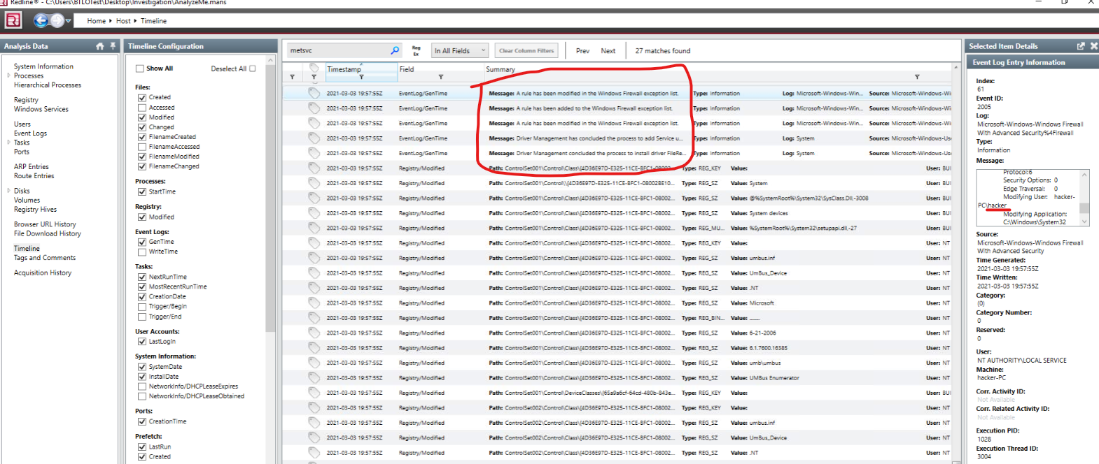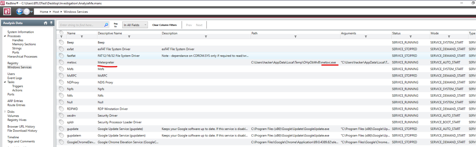We know the file name: C:\Users\hacker\AppData\Local\Temp\OHpObWvB\metsvc.exe.