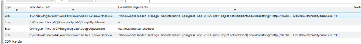 The task will grab the file from the attacker’s machine. What file is scheduled to run on the tasks? Include the full path to the file within the URL(5 points): http://10.201.1.105:8080/catchmeifyoucan.exe