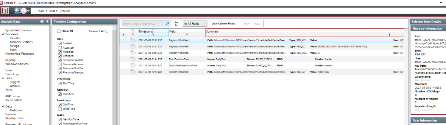 The insider has likely utilized ATT&CK ID T1547.001 to obtain persistence. Find the malicious registry entry and submit the Registry Key Value and modified date(5 points): Userinit.exe, evil.exe, 2021-03-07 11:15:29Z