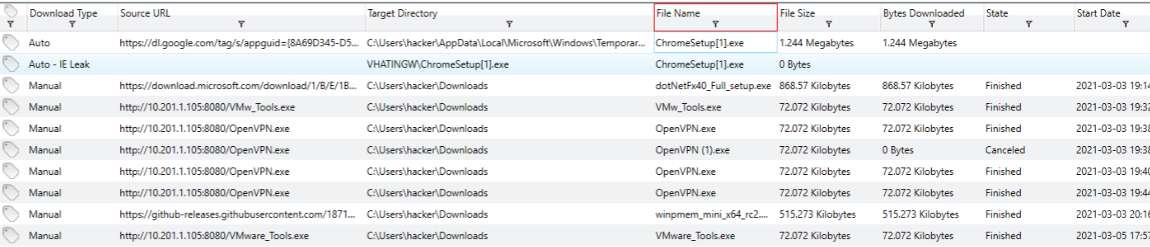 The user tried to download an .exe file to the system but cancelled it. What was the filename?(5 points): Openvpn (1).exe